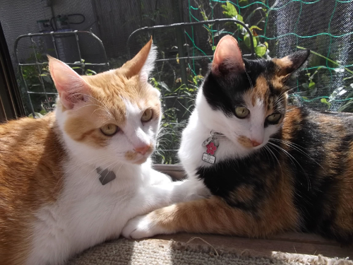 脱走する直前。二匹仲良く窓辺で日向ぼっこしてたのにぃ